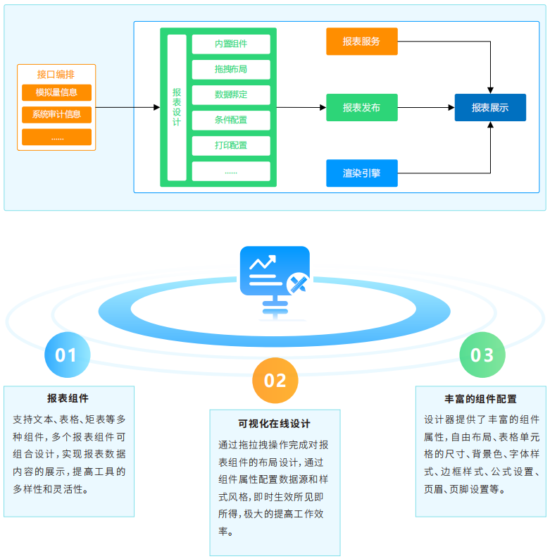1、新增四大核心模塊:接口編排工具、BI大屏設計器、地質保障系統設計工具、報表設計器。