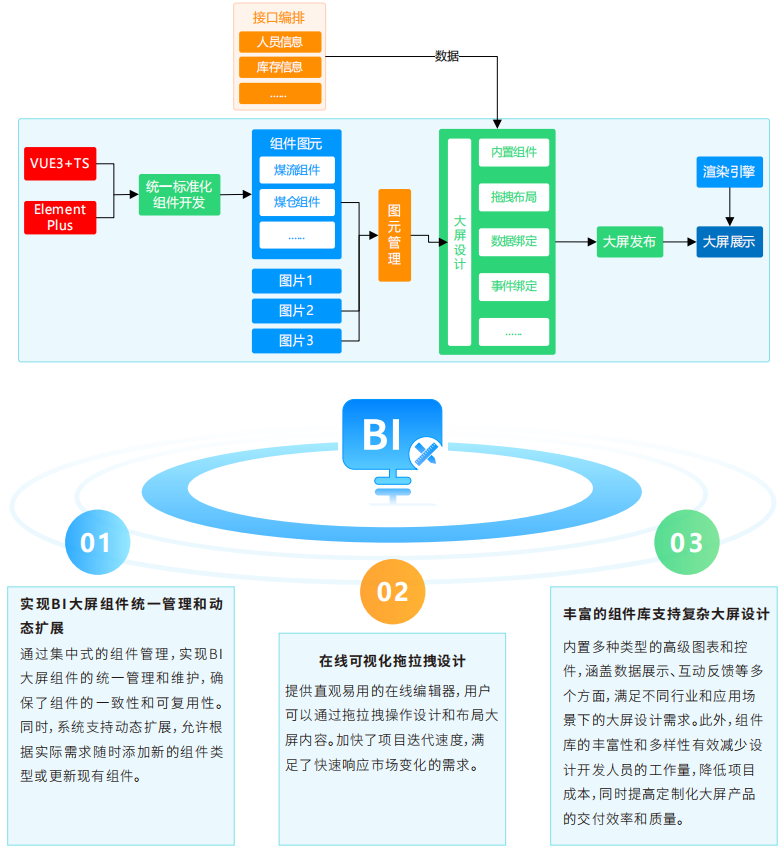 實現數據可視化設計,幫助企業快速構建動態、交互式的數據展示大屏,實現多維度業務數據的直觀呈現與智能分析。