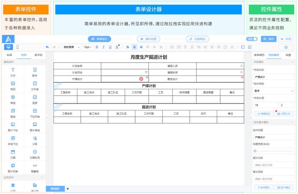 2、低代碼敏捷開發:小安易聯的應用設計工具允許開發者使用圖形化操作界面進行設計和配置,通過可視化拖拉拽而非傳統編程方式來快速構建應用程序,可快速完成業務功能開發,降低系統交付人員技術門檻,同時保持設計應用的靈活性和可擴展性。