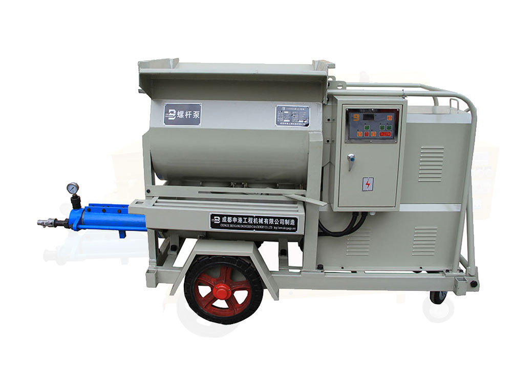 該泵結(jié)構(gòu)新穎、構(gòu)思獨(dú)特;避免了灌注稠漿較困難的不足,使用安全方便、效率高。本機(jī)主要由攪拌機(jī)構(gòu)、增壓機(jī)構(gòu)及電控系統(tǒng)等組成,其特點如下:
